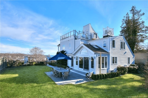 Sliders and French Doors from the kitchen lead to a large stone patio for grilling and entertaining. If you are searching for the perfect beach house, look no further! The outdoor shower is perfect for rinsing off after a day at the beach. This house, set high above Compo Beach has the views and no flood insurance needed.