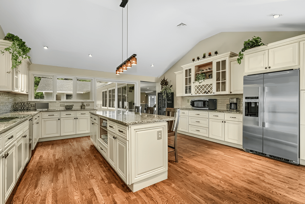 An exceptionally spacious cook’s kitchen with vaulted ceiling, custom cabinetry, granite countertops, center island, stainless steel Fisher & Paykel appliances opens to an inviting front-to-back great room with fireplace and custom built-ins. The home includes a mudroom entry with easy access to the kitchen and sliders to a large bluestone patio. The master suite features a large walk-in closet, an additional large closet, plus a luxurious spa-like marble bathroom with soaking tub, shower and double vanity with under cabinet lighting. Three additional bedrooms, a full bath and a laundry room complete the bedroom wing.
