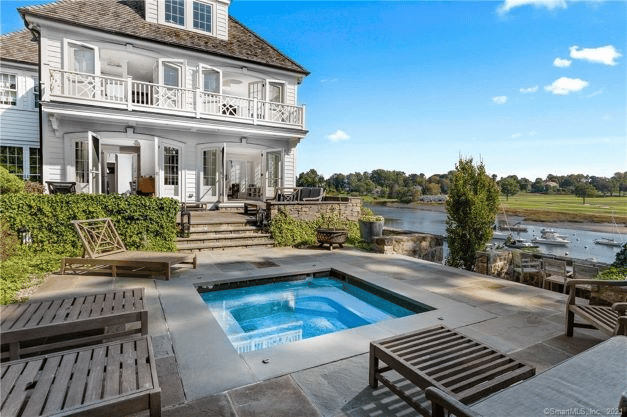 With an idyllic Southport Harbor location, this expansive .76 acre waterfront property, features a very elegant and impeccably renovated 6000 square foot residence which includes 6 Bedrooms, 6 full and one-half Baths, a Two-Car Garage with Loft Studio, separate One-Car Garage, the charming Cottage perched at water’s edge, beautiful stonework and landscaping, several Terraces, built-in Grille, a most inviting Spa, and the very special amenity of a private, deep-water Dock.