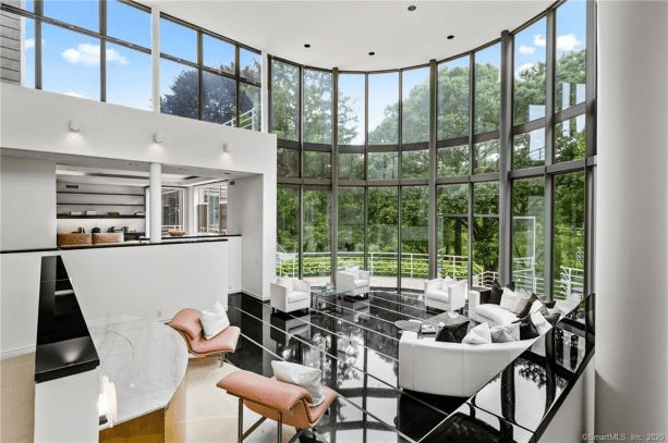 Arrive through the gates down the private drive to the expansive motor court. Enter and immediately notice the walls of the glass entryway. The Morris House was thoughtfully designed to separate entertaining spaces and common areas from private family quarters.