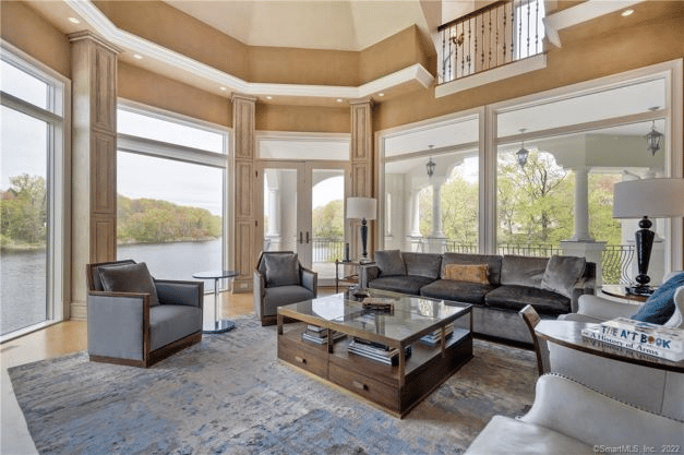 RiverView is a custom-built masterfully designed Mediterranean Stucco Villa perfectly situated on the banks of Lee’s Pond & the Saugatuck River in the heart of Westport’s vibrant village. Abundant windows and multi-level terraces all showcase the breathtaking and uninterrupted water views. Beauty beyond the imagination, as each view is a priceless feast for the eyes.