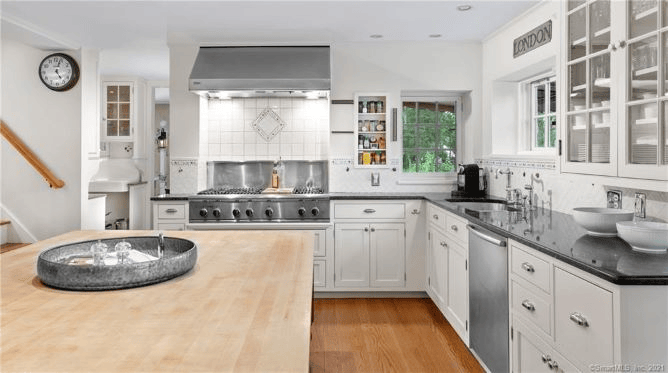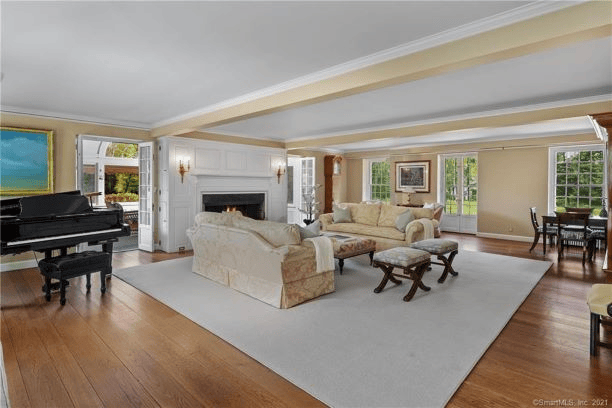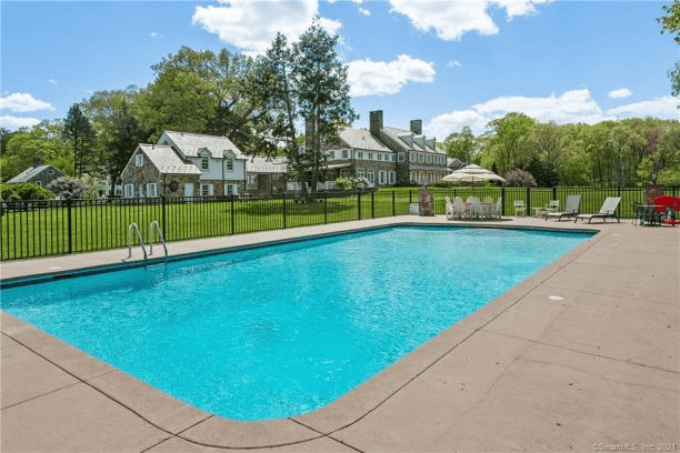 LR opens to a large screened porch. Banquet-sized formal DR, paneled library, large gourmet eat-in kitchen, sunny breakfast room, butler’s pantry with cast iron apron sink. 4 en-suite BRs in the main house, addl large BR suite over 2½ bay garage attached to the main residence by a port cochere. Charming 2 Bdrm / 1.5 baths income-producing coach house over 3 bay garage. MBR features a fireplace + large loft office. Unique expansive grounds augmented by serene woodlands of the adjoining 46-acre Silvermine Fowler Preserve and Kelly Upland Sanctuary, open space with walking trails, protected and managed by New Canaan Land Trust.