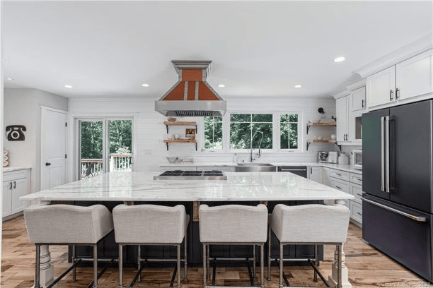The kitchen and big island are the main attraction with top of the line appliances and cabinets. The master bedroom at the main level creates the option of the Inlaw area without having to use the stairs. The house is full with sunlight from the front and the rear. New windows with insulated glass were installed and new insulation at walls and roofs were also part of the renovation. New HVAC system, new electrical and new lighting.