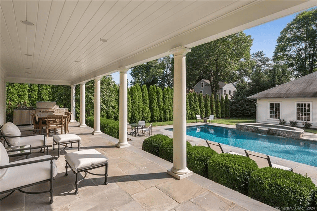 You will love the expansive front veranda with a double swing, ideal for enjoying the outdoors and taking in the picturesque surroundings. The backyard has a covered terrace which leads to the private heated gunite pool with cascading spa, creating a tranquil oasis for relaxation and entertainment. The property also includes an oversized heated three-car garage with epoxy floor, ensuring ample space for parking and storage. Located on the unbeatable Old Post Road, this fabulous Fairfield landmark offers prime location situated on one of the most prestigious and highly sought-after neighborhoods, that is within walking distance of shopping, restaurants, cultural venues, beaches and Metro-North train service to New York City. You’ll have the best of both worlds – a private retreat and convenient access to all the amenities Fairfield has to offer. Experience the epitome of refined living at this distinguished address. Don’t miss the chance to own this remarkable piece of history and create your own legacy in this fabulous Fairfield landmark.